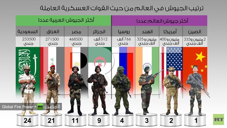 إنفوجرافيك: ترتيب الجيوش في العالم من حيث القوات العسكرية العاملة