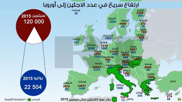 إنفوجرافيك:ارتفاع سريع في عدد اللاجئين إلى أوروبا