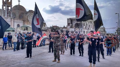 وأردف: إن الحزب السوري القومي الاجتماعي الأمين أسعد حردان، هذا الحزب المقاوم الذي هبّ للدفاع عن تراب سورية وهويتها وسيادتها الى جانب الجيش السوري وحزب الله وكافة قوى المقاومة، يزفّ لكم هذا العرس الذي يأتي فيه الشهيد الى بلدته ليثبت أنه ابن هذه الأرض وابن هذا الحزب وابن هذا الفكر الذي أسّسه أنطون سعاده، ويثبت فيه اليوم شهداؤنا ما خطه لنا بأنّ الدماء التي في عروقنا هي وديعة الأمة وهي حقاً تجدها الآن طالما أنها قد طلبتها، ولأننا حزب قتال ولسنا حزب أقوال، نقول بأنّ هذا هو نداء الواجب والذي شكل معنى الصمود الذي لولاه، وهذا ما يجب ان يعرف الصديق والعدو وكلّ الناس، بأنه لولا صمودكم ودماء الشهداء التي قدّمت على هذي الأرض وتقديمكم الصيغة والمعنى المعزّز بصحة العقيدة، لما كان من الممكن لأيّ كان أن يساعد سورية من الحلفاء، وانّ سورية اليوم تعود لتقلب المعادلات الجيواستراتيجية في المنطقة، وتعيد الثقل النوعي في مقابل أعتى الأعداء وأقواهم، بمساعدة الحلفاء نعم، ولكن لأنها صمدت ولأنها بصمودكم حققت معادلة الثبات الاستراتيجي التي تتيح للأقوياء أن يدخلوا معها في حلف له طبيعة الثبات، وتستطيع فيه أن تكون نداً للأقوياء في العالم...