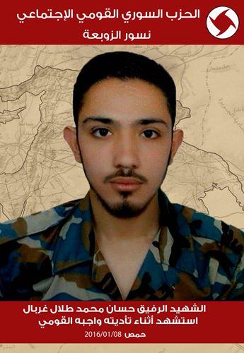 يزف الحزب إلى الأمة وعموم السوريين القوميين الاجتماعيين في الوطن وعبر الحدود، خبر استشهاد الرفيق حسان محمد طلال غربال أثناء تأديته واجبه القومي.
