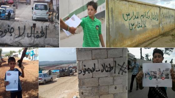 أطلق فريق توثيق انتهاكات "جبهة النصرة" حملة "أطفال لا جنود" في مناطق متفرقة من ريف إدلب شمال سوريا في محاولة جادة لوقف عمليات تجنيد الأطفال ضمن الفصائل المسلحة. وقامت مجموعة من الناشطين والمدرسين بتدشين حملة "#أطفال_لا_جنود"، بهدف وقف زج الأطفال في سياق النزاعات الدائرة في المحافظات السورية. وتندرج الحملة المدنية في إطار الرد على حملة "انفر" التي أطلقها عناصر "جبهة النصرة" في محافظتي إدلب وحلب، والتي جندت قرابة 500 طفل في صفوف التنظيم. ويتركز نشاط القائمين على الحملة على نشر صور وكتابات على الجدران تدعو لوقف تجنيد الأطفال وتحثهم على الابتعاد عن السلاح والاهتمام بالدراسة. ومن بين الشعارات المتداولة "عيش طفولتك بدون سلاح"، و"سلاح الطفل علمه"، كما نشرت شعار الحملة "أطفال لا جنود" على الجدران وفي المدن والأحياء. ولاقت الحملة تفاعلا إيجابيا لدى أغلب المؤسسات التعليمية والاجتماعية، حيث قال الناشط الإعلامي عاصم زيدان مدير الحملة إن إطلاقها جاء كرد على تزايد عمليات تجنيد الأطفال مؤخرا، منوها إلى أن نشاطات الحملة لم تكن علنية، كون الفصائل المسلحة تقاومها. وأوضح زيدان أن الحملة تهدف إلى تنبيه الأهالي وتوعيتهم وتوعية أطفالهم، من خطورة إرسالهم للقتال ضمن الفصائل ومن تجنيدهم، ووجوب إرسالهم للمؤسسات التعليمية. وقال في تصريحات لـ"العربي الجديد": "الأطفال الذين وثقنا حملهم للسلاح من قبل الفصائل المسلحة تتراوح أعمارهم بين 14 و18 عاما، واكتشفنا غرابة الدوافع التي تجعل بعض الأهالي يجبرون أطفالهم على حمل السلاح، بعضها مادي وبعضها ديني، وأحيانا لمجرد الإحساس بالقوة من خلال أبناء مسلحين أو مجندين". وتعتمد الحملة على فريق مؤلف من عدد من الناشطين داخل سوريا وفي شمالها بالتحديد، وذلك عبر 4 أنشطة، كل نشاط منها موجه لفئة معينة من المجتمع، "فهناك جلسات توعية يقوم بها المدرسون والناشطون للأطفال والأهالي في عدة مناطق، وبخ الغرافيتي وهو موجه للمجتمع بشكل عام، والبوسترات التي تحوي رسومات خاصة بالأطفال، بينما البروشورات فتتوجه بشكل خاص للأهالي، وجلها تتضمن مواد توعية، وتحمل أهداف الحملة وأفكارها وهي الحد من تجنيد الأطفال في الشمال السوري". وكانت منظمات دولية ومحلية حذرت من تنامي ظاهرة تجنيد الأطفال في سوريا، مستغلين عنفوان الأطفال وشغفهم بحب المغامرة، وهو ما تعتبره المنظمات الدولية بأنه ضمن جرائم الحرب.
