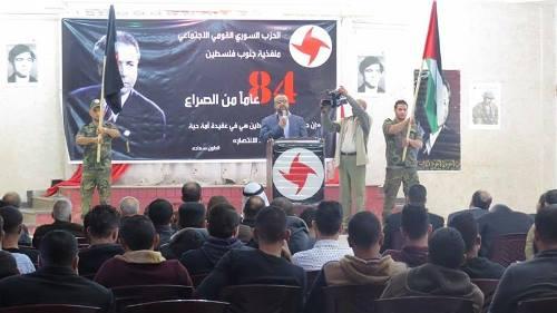 وختم رسالته بتوجيه التحية للحضور ولفلسطين الأبية، ولتحي سورية وليحي سعاده"