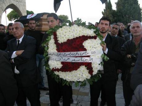 شيّع الحزب في مأتم شعبي وحزبي مهيب، الأمين أنطون صالح سعاده، بمشاركة وفد مركزي من الحزب ضمّ ناموس مجلس العمد الأمين نزيه روحانا، عميد الثقافة والفنون الجميلة د. الرفيق جورج جريج، عضو المكتب السياسي الأمين مسعد حجل، رئيس لجنة تاريخ الحزب الأمين لبيب ناصيف، مدير الدائرة الإذاعية الأمين كمال نادر، هيئة منفذيتي كسروان وجبيل وعدد من أعضاء المجلس القومي. كما شارك في التشييع رئيس بلدية الذوق نهاد نوفل ورئيس اتحاد بلديات كسروان الفتوح ورئيس بلدية عين الريحانة، وجمع من القوميين والمواطنين والقوميين. انطلق موكب التشييع إلى كنيسة مار ضومط الرعائية في ذوق مكايل، وحُمِل النعش ملفوفاً بعلم الحزب على أكتاف ثلة من القوميين، وتقدّم موكب التشيع حملة أعلام الزوبعة والعلم اللبناني وأكاليل الزهر باسم رئيس الحزب الأمين أسعد حردان وباسم منفذية كسروان. أقيمت للراحل صلاة الجنازة التي شارك فيها كهنة القرى والبلدات، وألقى كاهن رعية مار ضومط الأب بولس الريفوني كلمة أشار فيها إلى أنّ الراحل كان مصلحاً في مجتمعه ومُسعِداً لمن حوله، وكان يحضّر لإقامة ذكرى السنتين لإبنه يحيا بعد عشرين يوماً. وعدّد صفاته الطيبة وأعماله على النول حيث رسم لوحات لقديسين ومطارنة ورؤساء دول. وهو رئيس ومؤسّس نقابة أصحاب المنسوجات اليدوية الذوقية، ونادي إحياء الرياضة، ولم يطلب لنفسه مغنماً ولا استخدم منّة للوصول الى أيّ مكسب فردي. بل كافح من أجل الحياة والكرامة. وبعد الصلاة ألقى الأمين كمال نادر كلمة المركز ، فعدّد مزايا الأمين الراحل وفضائله، ودوره في المجتمع والحزب وصبره على الآلام والمصائب التي حلت بعائلته وبالوطن، وقال إنه كان مؤمناً إيماناً عميقاً بالعقيدة القومية الاجتماعية التي تحمل الخلاص للبنان وللأمة من أمراض الانقسامات والحروب الأهلية الطائفية والمذهبية، وكان يتعالى على جراحه الشخصية ليضمّد جراح الوطن، ويغفر للذين أساؤوا إليه واضطهدوه، وكان يعلّم كلّ من حوله تعاليم العقيدة ويقول لهم إنها مدرسة للحياة وللسلوك الاجتماعي وللبطولة وللعز. أضاف الأمين نادر: كان رجلاً شجاعاً وصلباً، يحوّل اليأس الى أمل والنكسة الى حافز ليعاود الصعود نحو القيَم والمسير الى الانتصار، كان محافظاً على التراث ومؤمناً بالديمقراطية والتعدّد واحترام الغير، كان يقول دائماً: تعالوا نبني هذا البلد ونجعله موطناً للإخاء وللمحبة والسلام والازدهار والإشعاع الثقافي والفني، وقد طلع من بيته الفنان المبدع والمخرج يحيا أنطون سعاده، الذي صنع في فترة قصيرة أعمالاً فنية مميّزة سكب فيها روحه وعقله وأخلاقه، ثم غاب بشكل صاعق ومفجع قبل سنتين من اليوم، فحمل الأب والأم والاخوة والأهل هذا المصاب الكبير بصبر ومرارة، كما حمله عالم الفن وأهل الفن بغصة ما زالت الى اليوم ولم تغب ذكراه. وتطرّق الأمين نادر إلى الوضع العام في البلاد، فقال إنّ الأخطار كبيرة والتعبئة المذهبية قد بلغت مستوى عالياً يهدّد لبنان بأفظع الأخطار، وعلى جميع القوى السياسية والأهلية وهيئات المجتمع المدني ان تبذل جهداً كبيراً لتخفيف الاحتقان.