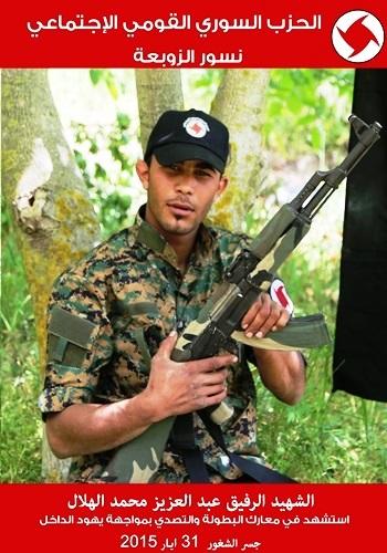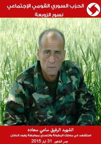 إستشهد الرفيق سامي جبرا سعادة (ناظر تدريب منفذية حمص) و الرفيق عبد العزيز محمد الهلال في منطقة أريحا - جسر الشغور 31-05-2015