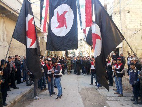 شيّع الحزب الشهيدين الرفيقين حسام مسوح وطوني الساحلي، الأول في بلدة حبنمرة ـ الحصن، والثاني في حي الأرمن ـ حمص، وسط حضور شعبي وحزبي حاشد. فقد شهدت بلدة حبنمرة في الحصن تشييعاً حاشداً للشهيد البطل الرفيق حسام أنيس مسوح في كنيسة مار جاورجيوس، وحضر التشييع إلى جانب عائلة الشهيد منفذ عام الحصن الرفيق غطفان عبّود وأعضاء هيئة المنفذية وفاعليات وعدد من رجال الدين وحشد كبير من القوميين والمواطنين الذين رفعوا أعلام الزوبعة والأعلام السورية. موكب التشييع شاركت فيه فصائل قومية رفعت النعش على الأكف وتقدم الموكب حملة الأكاليل بينها أكليل باسم رئيس الحزب الأمين أسعد حردان، واكاليل باسم المكتب السياسي ومنفذية الحصن ومديرية حبنمرة. وبعد قداس لراحة نفس الشهيد ترأسه كاهن الرعية يعاونه لفيف من الكهنة، أدى القوميون الاجتماعيون التحية الحزبية في وداع البطل الراحل، والقى عضو المجلس القومي الرفيق بدري حجل كلمة باسم الحزب أشاد فيها ببطولة الشهيد الذي قدم دمه في مواجهة الارهاب والتطرف ومن اجل ان تحيا سورية حرة ابية عزيزة. وشدد الرفيق حجل على أنه بفضل تضحيات القوميين الاجتماعيين وبطولاتهم وبفضل تضحيات الجيش السوري وصمود ابناء شعبنا، سنهزم المؤامرة ونقضي على الارهاب والتطرف ونحمي أرضنا ونصون وحدة نسيجنا الاجتماعي. وختم محيياً الشهيد البطل وكل شهداء الحزب والأمة. وبعد أن ووري الجثمان في مدافن العائلة تقبّلت العائلة ومسؤولو الحزب التعازي بالشهيد. وشهد حي الأرمن في حمص تشييعاً حاشداً للشهيد البطل الرفيق طوني سامي الساحلي شاركت فيه فصائل قومية رفعت النعش على الأكف وسط رفع أعلام الحزب والاعلام السورية، وحضر التشييع إلى جانب عائلة الشهيد منفذ عام حمص العميد الرفيق نهاد سمعان والعميد الرفيق محمد الحاج وأعضاء هيئة منفذية حمص، وفاعليات وعدد من رجال الدين. وقد أقيم قداس لراحة نفس الشهيد في كنيسة السيدة أم النور في حمص، وناب عن سيادة مطران حمص وتوابعها المتروبوليت جاورجيوس قدس الأرشمندريت الياس عبدوكا والارشمندريت مكسيموس جمل ولفيف من الكهنة. تقدم موكب التشييع حملة الأكليل، بينها اكليل باسم رئيس الحزب الأمين أسعد حردان، وأدت ثلة من القوميين التحية الحزبية للشهيد قبل ان يوارى الجثمان في مدافن العائلة. وفي ختام التشييع تقبّلت عائلة الشهيد ومسؤولي الحزب التعازي. هذا وكان جثمانا الشهيدين نقلا من مشفى طرطوس ملفوفيْن بعلمي الزوبعة والعلم السوري في موكب حزبي تقدمه منفذ عام صافيتا الرفيق اسكندر كباس وجموع من القوميين إلى منطقتي الحصن وحمص.